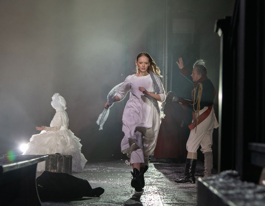 История любви — ведущая в этом спектакле: Петр Гринев, прожив жизнь и утратив супругу, вспоминает их с Машей историю. Для режиссера Павла Сафонова «Капитанская дочка» — это прежде всего одно из первых русских произведений о человеке, вовлеченном в роковые события истории. Сценография и костюмы (художник-постановщик Дмитрий Разумов, художник по костюмам Евгения Панфилова) подчеркивают условно-поэтический подход.